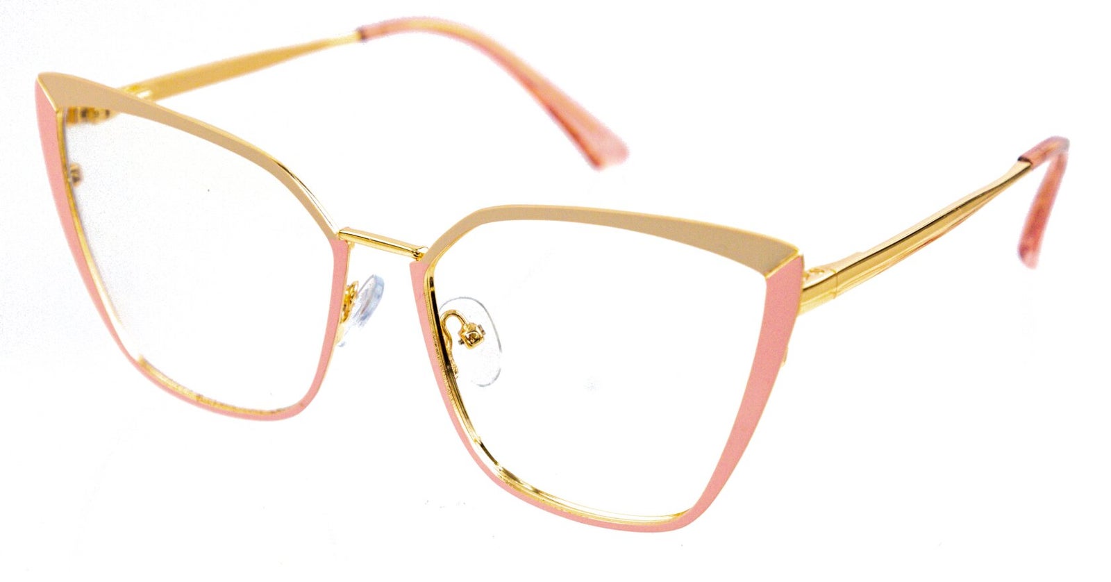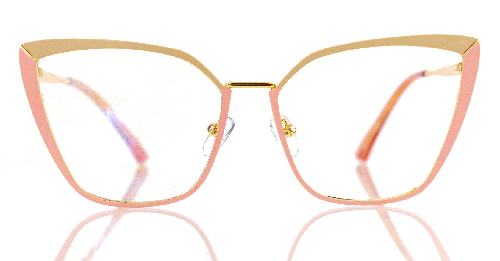 Hermosas gafas estilo mariposa, en una gruesa y duradera montura, se adaptan a todos los tipos de rostros, y combinan perfecto con todo, vienen en un hermoso tono palo de rosa con crema y dorado, lo cual las hacen perfectas para toda ocasión, son cómodas